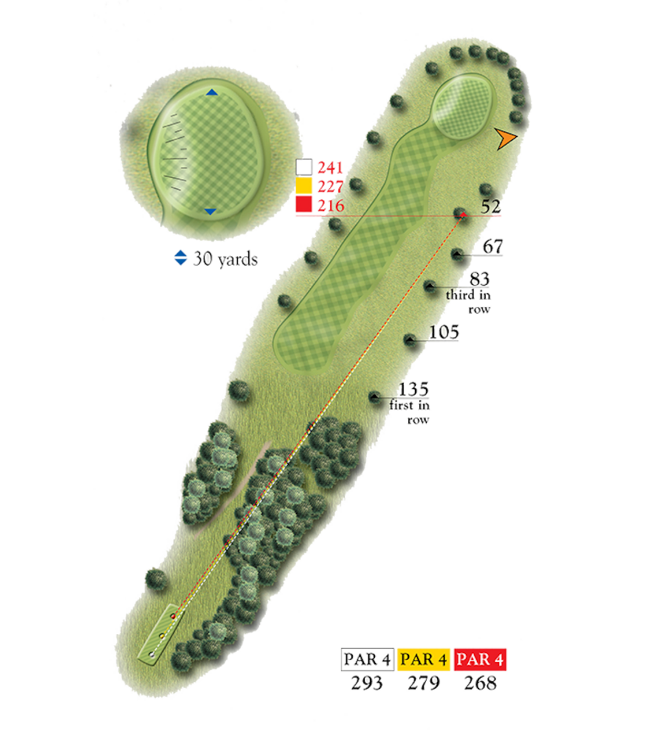The 293 yard 10th requires an accurate tee shot through the trees to an open fairway and a relatively straight forward iron shot to a large green. From here golfers enjoy stunning views as this is the highest point of the course.
