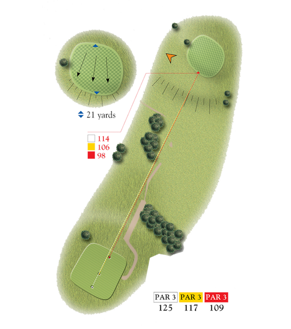 This short par 3 hole demands the golfer to play an accurate tee shot from an elevated tee to a raised green. The key to overcoming this hole is in selecting the correct club. Often good shots get punished badly if the club selected is not right.
